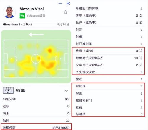 同時(shí)中場外援維塔爾起到了不小的作用,他全場比賽傳球成功率高達(dá)96%,12次一對(duì)一對(duì)抗贏下8次,還有5次成功防守?cái)?shù)據(jù),2次制造對(duì)方犯規(guī),只丟了9次球權(quán)。