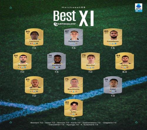 雷速體育9月30報(bào)道 今天意甲官方公布了意甲聯(lián)賽第5輪最佳陣容。