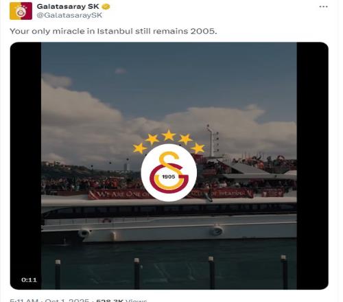 加拉塔薩雷在主場(chǎng)以1-0力克英超領(lǐng)頭羊利物浦,這也爆出了一大冷門(mén)!在比賽結(jié)束后,加拉塔薩雷隊(duì)在社媒上,也對(duì)利物浦進(jìn)行調(diào)侃:“在伊斯坦布爾的比賽里,你們唯一的奇跡仍然是在2005年?!?/p>