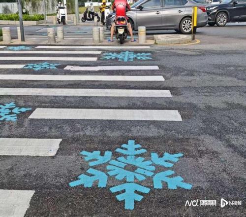 周邊的斑馬線特意融入“雪花”設計元素。