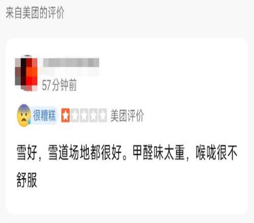 除了配套沒完全建好,新裝修的“味道”也成了不少人吐槽的點。在社交平臺上,關(guān)于華發(fā)冰雪世界“甲醛味道大”的討論熱度也不小。有網(wǎng)友吐槽“味道大到有點沖”,“建議大家買厚一些的口罩來”;不過也有部分常玩雪的人覺得,味道沒那么夸張,“能接受,不算刺鼻”,不同感受還引發(fā)了小范圍討論。