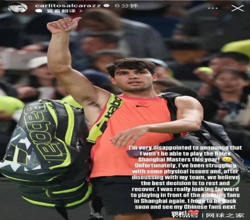 再來(lái),我們將視線轉(zhuǎn)到上海大師賽,就在今天,上海大師賽迎來(lái)一個(gè)讓人遺憾的消息:阿爾卡拉斯宣布退出上海大師賽。