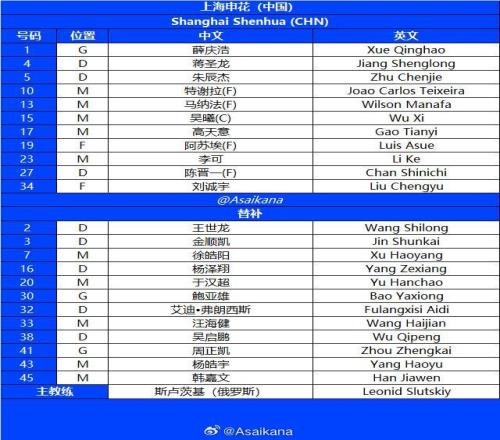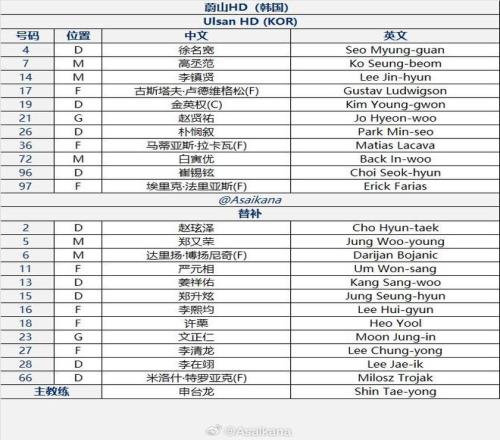 申花vs蔚山:雙方均三外援,李可、高天意首發(fā),劉誠宇出戰(zhàn)