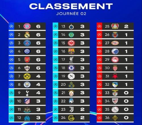 10月2日凌晨,多場(chǎng)歐冠比賽同時(shí)進(jìn)行。至此,歐冠聯(lián)賽階段的2輪比賽全部結(jié)束。最新的積分榜上,幾家歡喜幾家愁。拜仁皇馬等6隊(duì)2連勝,而巴薩和利物浦則只有3分,藥廠則位于淘汰區(qū)。