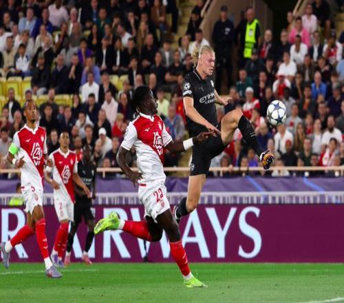 第44分鐘,曼城在摩納哥的30米區(qū)域連續(xù)傳遞,奧萊利傳中,哈蘭德高高躍起,頭槌破門。