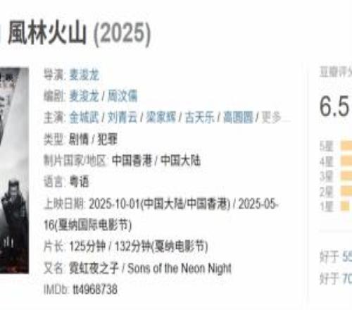 電競(jìng)體育10月2報(bào)道?今日,電影《風(fēng)林火山》豆瓣評(píng)分解禁,截止發(fā)稿前,豆瓣評(píng)分6.5分。