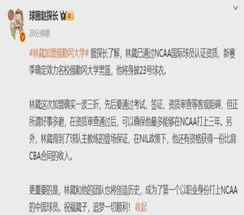 國內(nèi)媒體人跟進(jìn)報(bào)道稱,林葳在俄勒岡大學(xué)繼續(xù)身披23號(hào)球衣,得到了主教練的上場(chǎng)保證,并且在NIL政策下有資格獲得一份比肩CBA合同的收入,就此成為首位以職業(yè)球員身份打進(jìn)NCAA的中國球員。