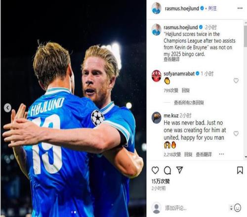 賽后霍伊倫在社交網(wǎng)站上寫(xiě)道:“霍伊倫在歐冠梅開(kāi)二度,而助攻者竟是德布勞內(nèi)——這劇情,我在2025年的 bingo卡(預(yù)測(cè)卡)上可完全沒(méi)寫(xiě)?。 ?/p>