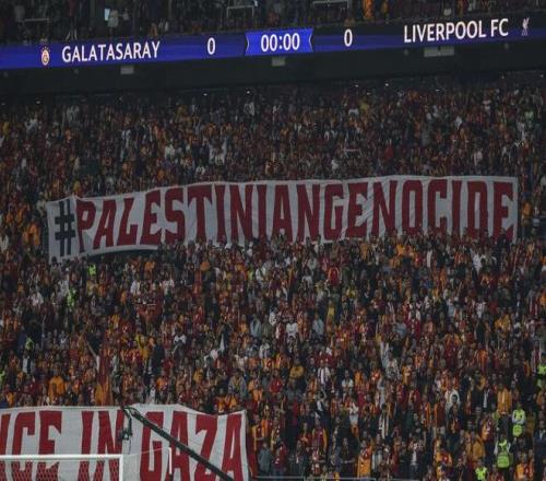 加拉塔薩雷球迷在對陣利物浦時,打出了支持巴勒斯坦的標語