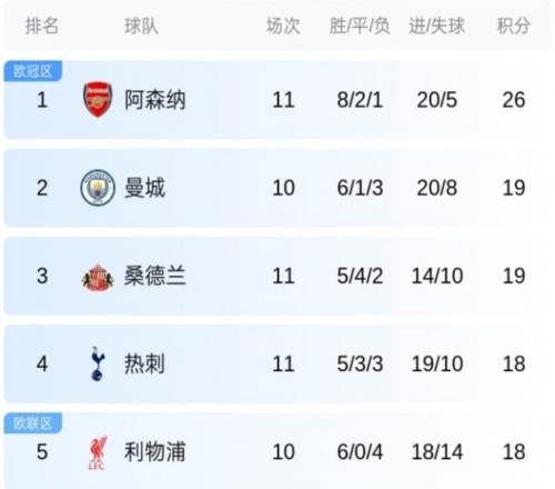 英超第11輪,阿森納客場2-2戰(zhàn)平桑德蘭。最新的積分榜方面,槍手7分優(yōu)勢領(lǐng)跑,曼城和桑德蘭同積19分,曼城明日凌晨對陣?yán)锲?。熱刺、利物浦、伯恩茅斯、曼?lián)四隊(duì)同積18分。黑馬本賽季打出比賽發(fā)揮實(shí)在出色。
