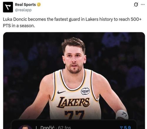 第六項:東契奇本賽季得分已突破500分,僅花費15場比賽成為湖人隊史最快后衛(wèi)。