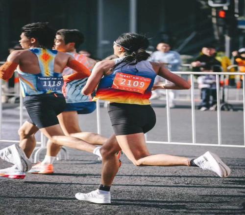 “今年溫度比去年高一些,狀態(tài)也不是很好,有些累,但還是PB了?!睕_線后,來自廣州的跑者鄧夏昭復(fù)盤著自己的PB之戰(zhàn)。這一戰(zhàn),讓她邁進(jìn)250大關(guān),跑到248。