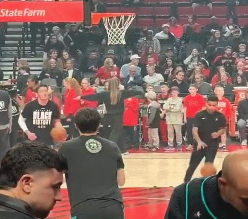 楊瀚森賽前積極熱身