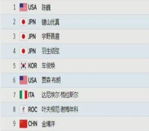 那屆奧運會花滑男單比賽最終的結(jié)果如下,冠軍由美國隊的陳巍獲得,我國選手金博洋排名第九,而羽生結(jié)弦只獲得了第四,排在他的兩個日本隊友之后。